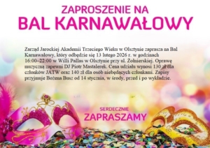 KomunikatyBal Karnawałowy 13 luty 2026 rok 2 stycznia 2026 http://www.jatw.pl/wp-content/uploads/2016/02/logo-jatw-2.png 0 0 Biuro JATW http://www.jatw.pl/wp-content/uploads/2016/02/logo-jatw-2.png Biuro JATW2026-01-02 17:18:042026-01-02 17:18:04Bal Karnawałowy 13 luty 2026 rok