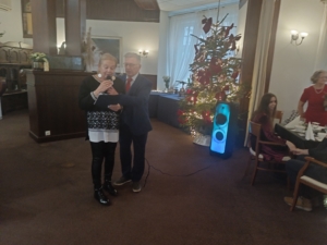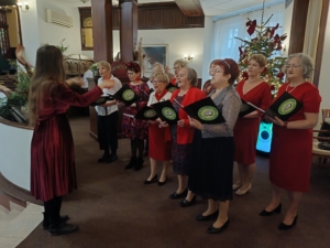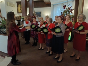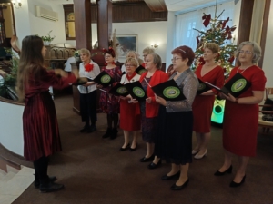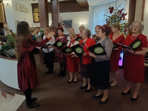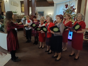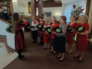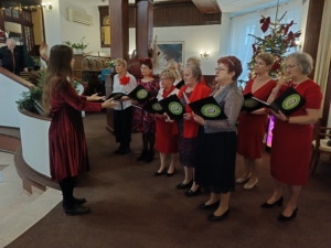 Spotkanie wypełniła serdeczna, świąteczna atmosfera, a wyjątkową oprawę muzyczną zapewnił chór Kantata, którego kolędy i pieśni bożonarodzeniowe poruszyły serca uczestników i podkreśliły magię wspólnego świętowania.
